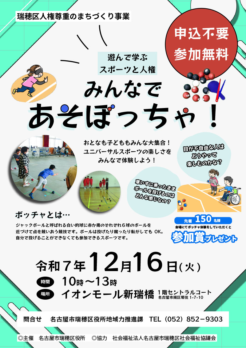 研修・講座・イベント情報 皆様お誘いあわせの上ご参加ください なごや福祉ボランティア募集! なごや福祉ボランティア募集PDFダウンロード 令和7年度サマーボランティア活動体験講座参加者募集! 募集案内PDFダウンロード 知りたい 社会福祉協議会とは 地域福祉活動計画 地域包括ケア推進計画(外部リンク) 地域福祉推進協議会 地域支えあい事業 ふれあい・いきいきサロン 福祉教育 施設の利用(在宅サービスセンター) 貸出事業 広 報 紙 デイサービスセンター 瑞穂福祉会館 瑞穂児童館 介護保険事業所 相談したい ボランティアセンター いきいき支援センター(外部リンク) 生活福祉資金貸付(外部リンク) 寄付 参加したい 研修・講座・イベント情報 赤い羽根共同募金 災害義援金 みずほ助けあい・支えあい活動助成事業のご案内 拠点型サロン 瑞穂ほっこりサロン 高齢者はつらつ長寿推進事業(コスモス) 社協正会員・賛助会員 個人情報保護について 個人情報保護に関する方針(プライバシーポリシー) リンク集 リンク集 サイトマップ サイトマップ